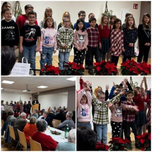 Eifrig hatten die Kinder das Krippenspiel „Weihnachten“ einstudiert, das sie mit viel Freude den Senioren und Seniorinnen vorspielten. Umrahmt wurde die Vorführung von zahlreichen Weihnachtsliedern. Bei den bekanntesten Liedern wurde von den Bewohnern mit großer Begeisterung mitgesungen und mitgeklatscht.