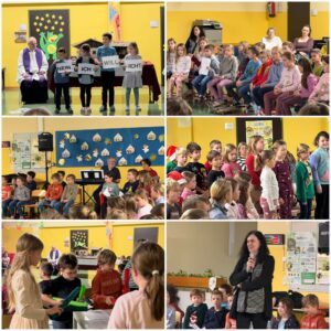 Zwei Tage vor dem Heiligen Abend trafen sich alle Klassen in der Aula, um gemeinsam mit Pfarrer P. Michael einen vorweihnachtlichen Gottesdienst zu feiern. Vorbereitet von Religionslehrer Franz Dungl präsentierten die Erst- und die Viertklässler Situationen, in denen wir oft sagen „Ich will nicht!“ Die zweite Klasse sang das „Ave Maria“ mit Bewegungen und erinnerte mit diesem Lied daran, dass die Heilige Maria dieses „Ich will nicht!“ nicht gesprochen hat, sie sagte „Ich will!“. P. Michael ermutigte anschließend, unser „Ich will nicht!“ zu einem „Ich will!“ zu verändern.